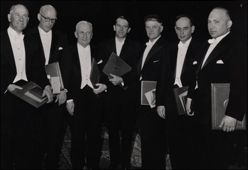 Академик Б.М.Понтекорво удостоен Ленинской премии за экспериментальные и теоретические исследования физики нейтрино и слабых взаимодействий.