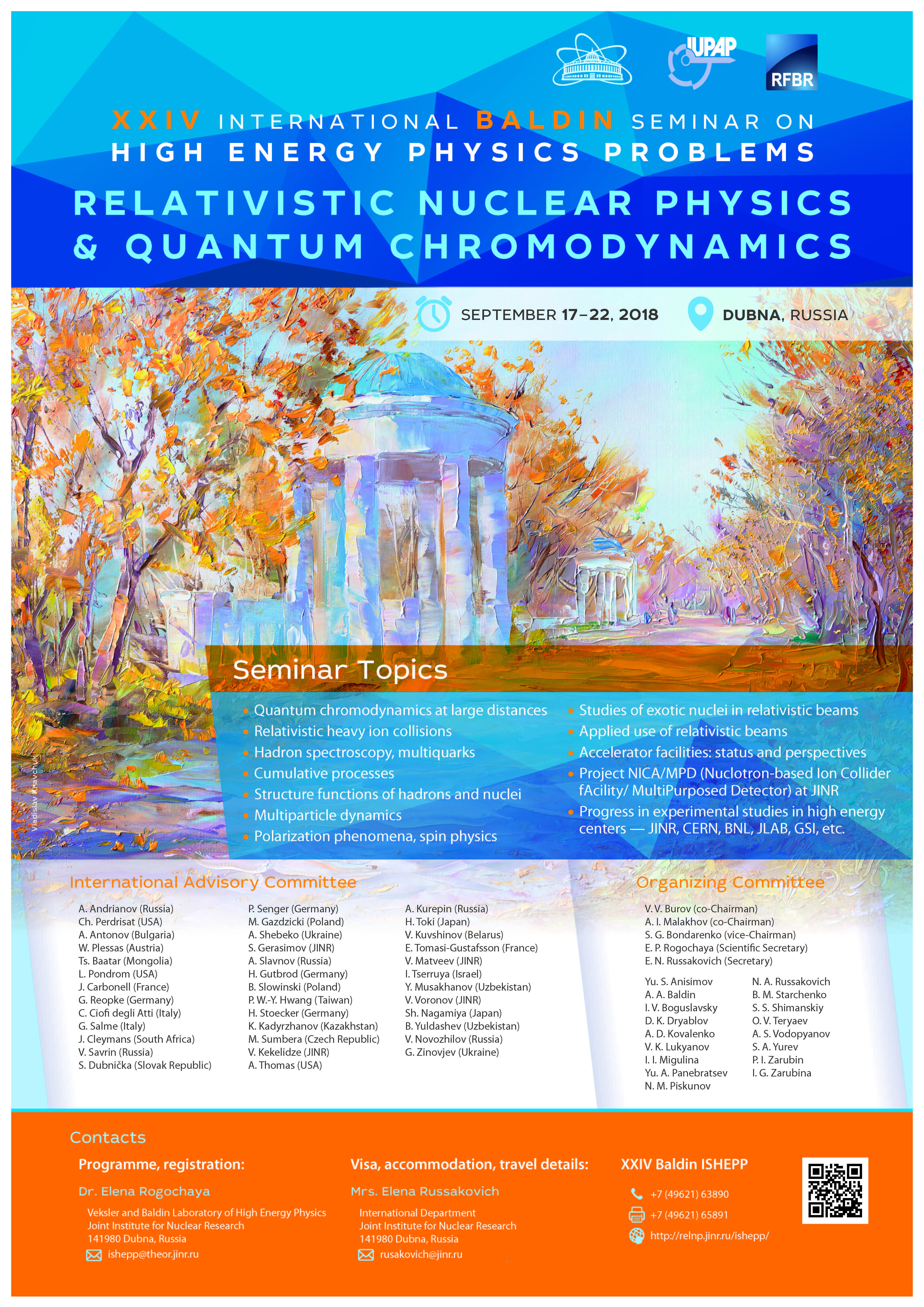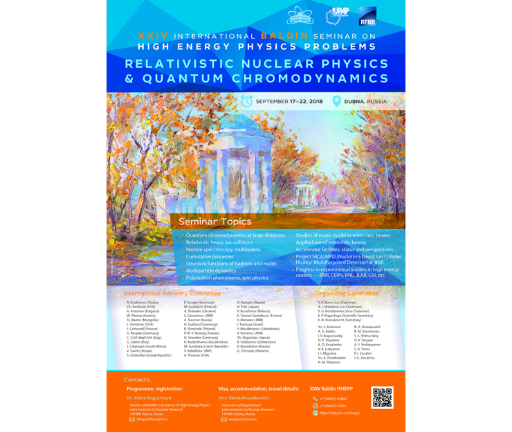 24-й Международный Балдинский семинар по проблемам физики высоких энергий «Релятивистская ядерная физика и квантовая хромодинамика» (Baldin ISHEPP XXIV) 17 — 22 сентября 2018 г. Лаборатория физики высоких энергий, Лаборатория теоретической физики ОИЯИ