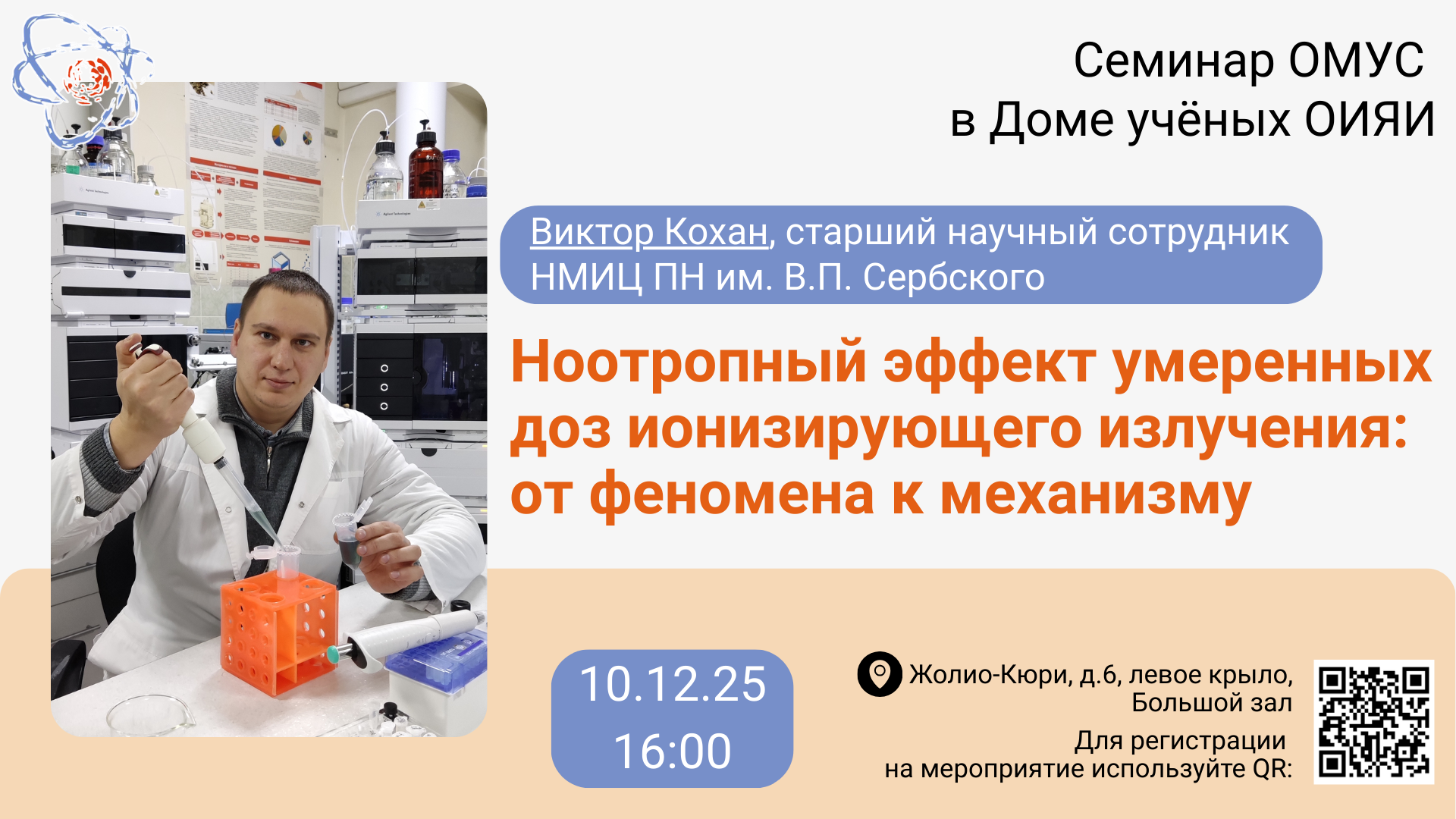 On 10 December 2025, at 4:00 PM, the Association of Young Scientists and Specialists at JINR invites everyone interested to the next seminar that will take place in the Big Hall of the JINR Scientists’ Club (6 Joliot-Curie St, left side).