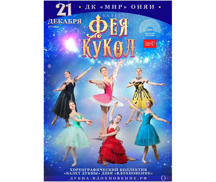 The JINR Cultural Centre “Mir” invites to the ballet “The fairy dall” that will take place on 21 December 2019 at 5:00 PM. Students of the Children’s Art School “Inspiration” and the choreographic band “Dubna ballet” will perform.