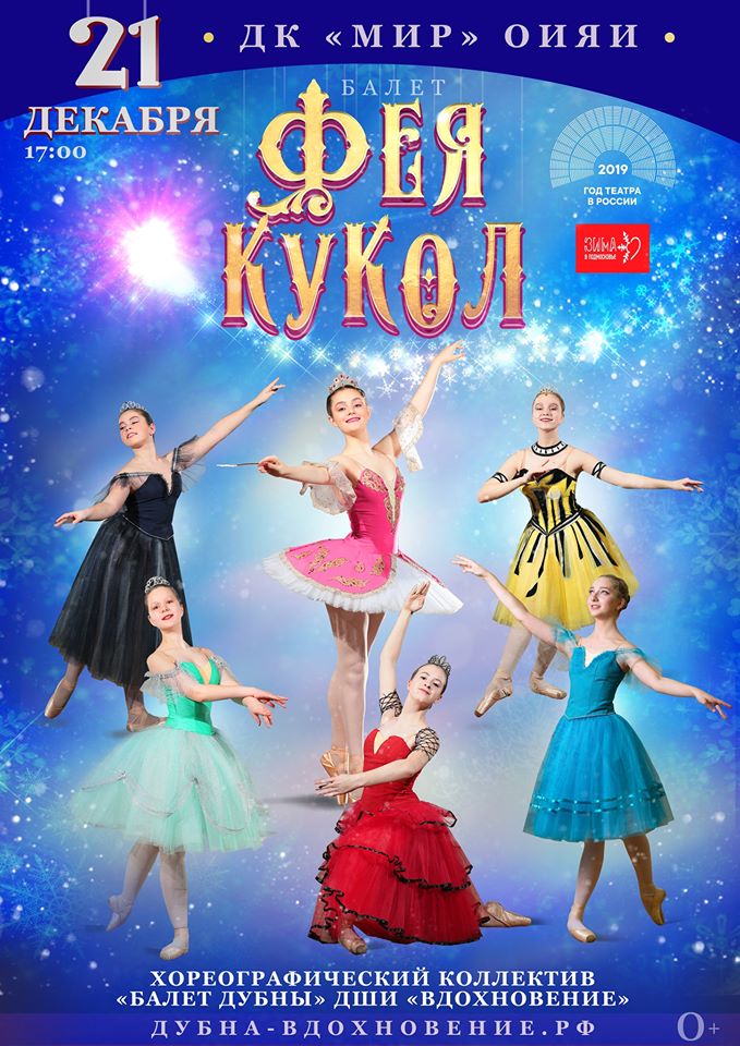 The JINR Cultural Centre “Mir” invites to the ballet “The fairy dall” that will take place on 21 December 2019 at 5:00 PM. Students of the Children’s Art School “Inspiration” and the choreographic band “Dubna ballet” will perform.