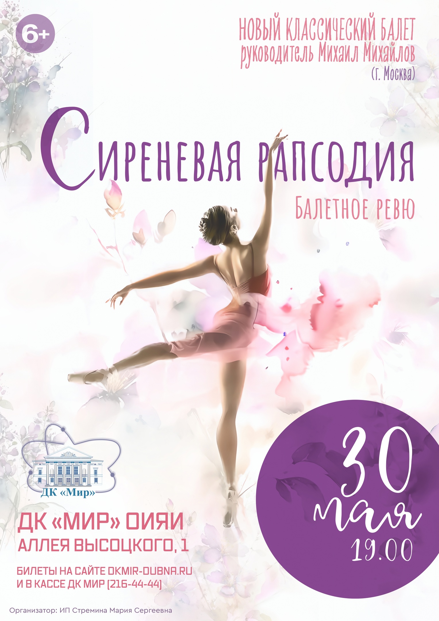 On 30 May 2023, at 7:00 PM, New Classical Ballet will present a ballet revue “Rapsody” in the JINR Cultural Centre “Mir”.
