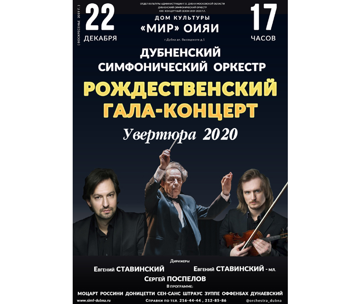 On 22 December 2019, at 5:00 PM, the Dubna Symphony Orchestra invites to the JINR Cultural Centre “Mir” for a Christmas gala-concert “Ouverture-2020”.