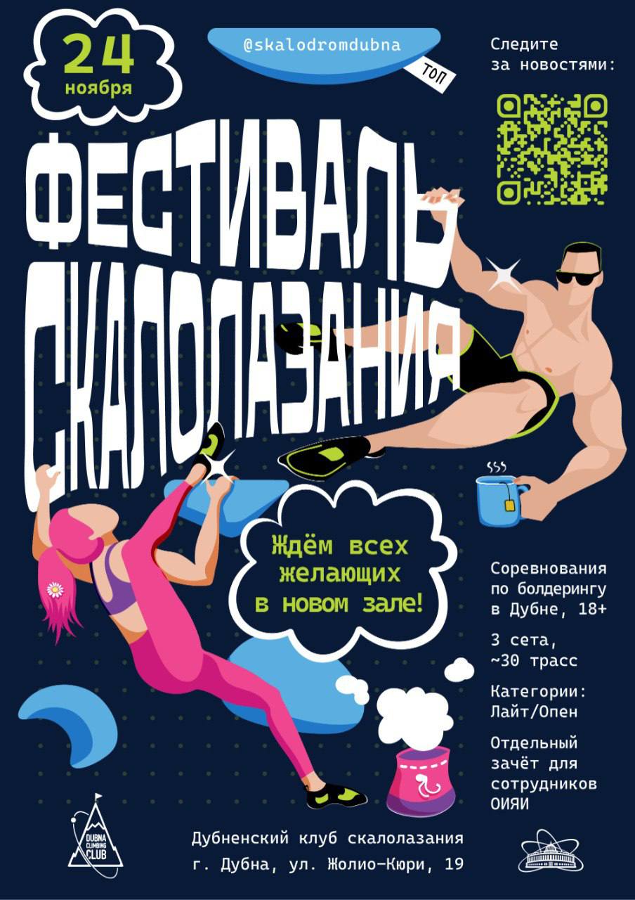 The bouldering competition will be available for athletes who have reached the age of 18. An additional competition will take place for JINR employees.