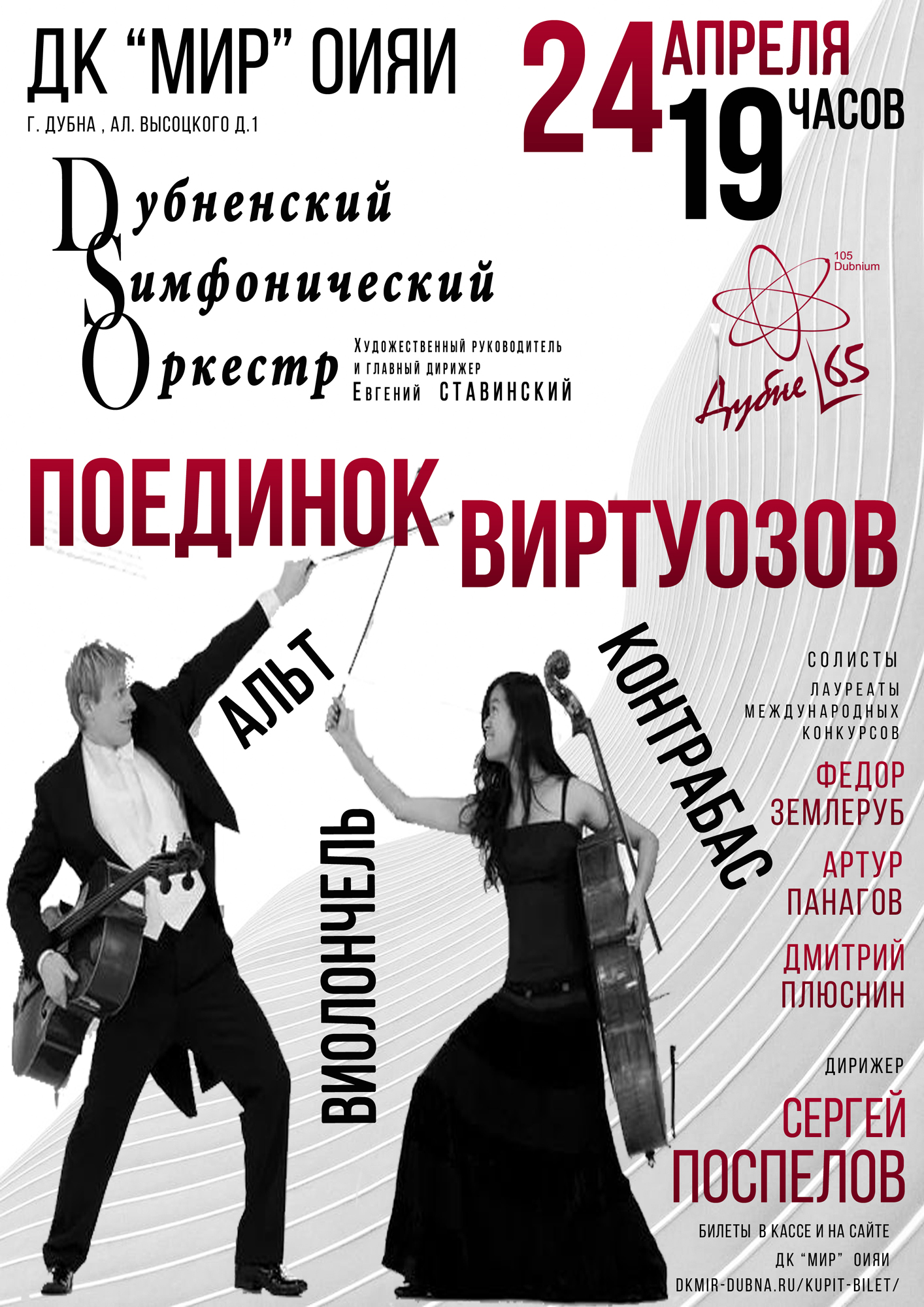 On 24 April 2021, the JINR Cultural Centre “Mir” will host a concert of the Dubna Symphony Orchestra “Duel of virtuosos”. Band director: Sergey Pospelov.