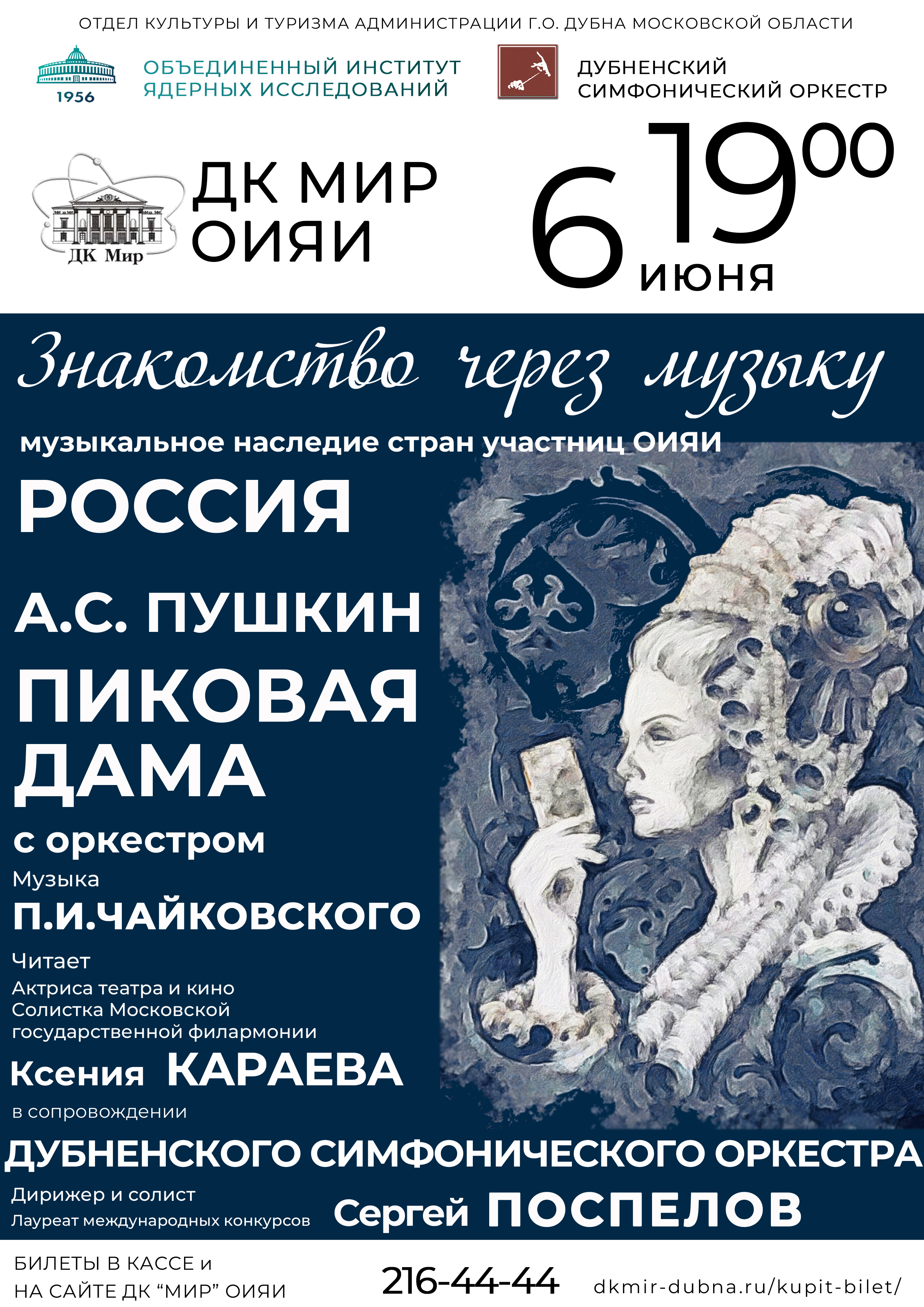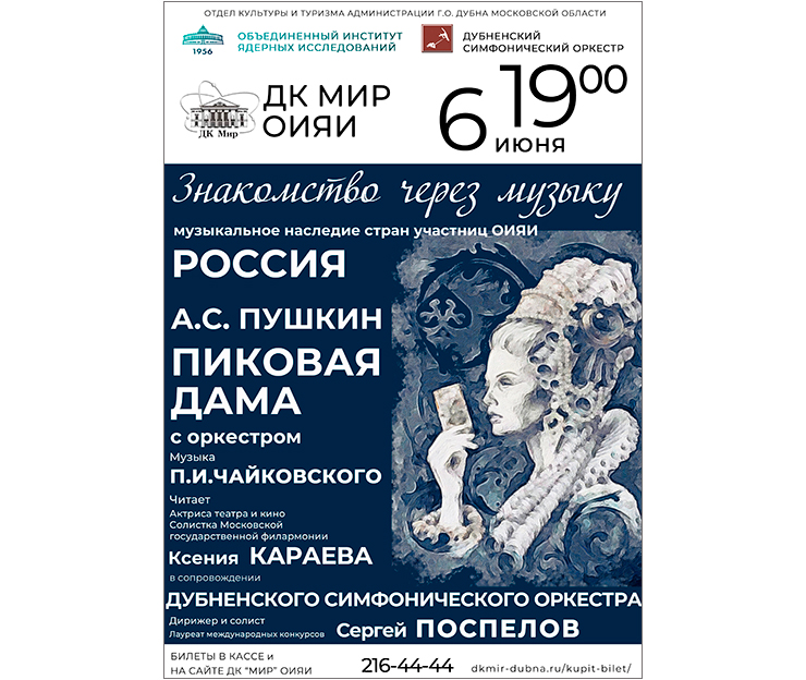 On 6 June 2022, at 7:00 PM, the JINR Cultural Centre “Mir” will host a concert “The Queen of Spades with the orchestra” of the cycle “Acquaintance through music. Musical heritage of the JINR Member States”.