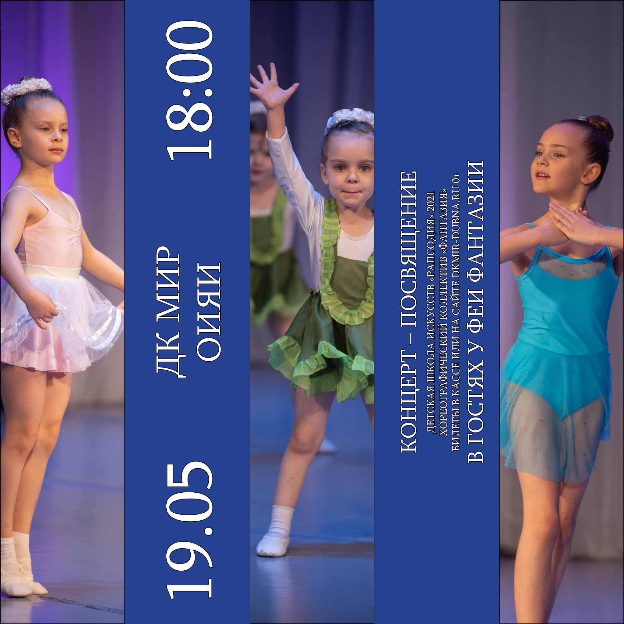 On 19 May 2021, the dance troupe “Fantasia” of the Children’s Art School “Rapsody” invites to the JINR Cultural Centre “Mir” for its concert “Visiting the fairy Fantasy”. The rite of passage for new dancers of the studio.