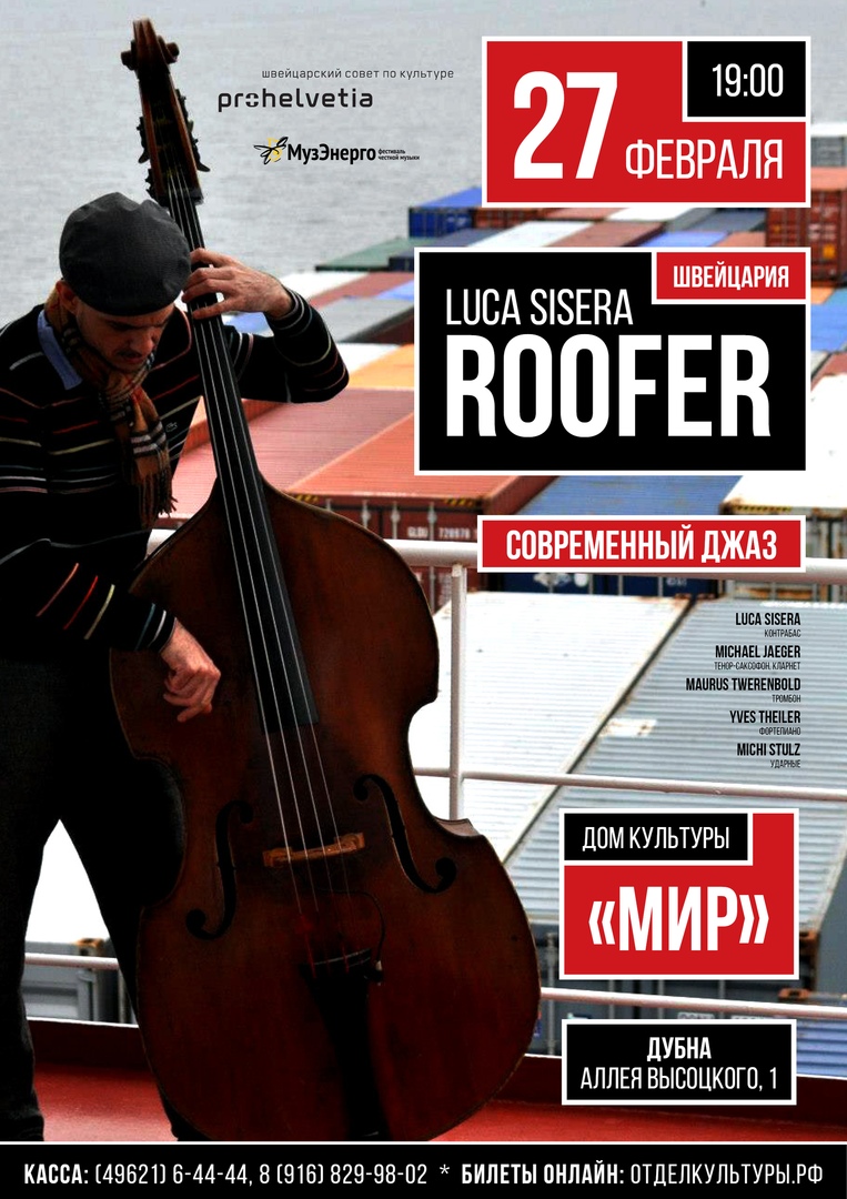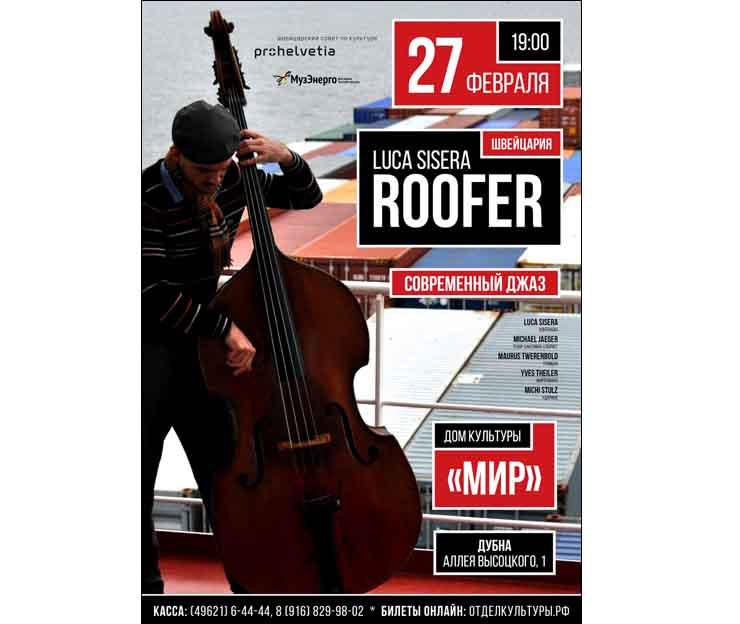 On 27 February 2019, at 7:00 PM, the JINR Cultural Centre “Mir” invites to the concert of modern jazz that will be performed by the “Luca Sisera Roofer” ensemble (Switzerland).