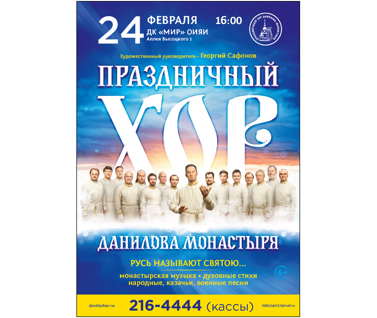On 24 February 2020, at 4:00 PM, the JINR Cultural Centre “Mir” invites to the concert of the St. Daniel Monastery’s choir “Rus’ is called saint…”.
