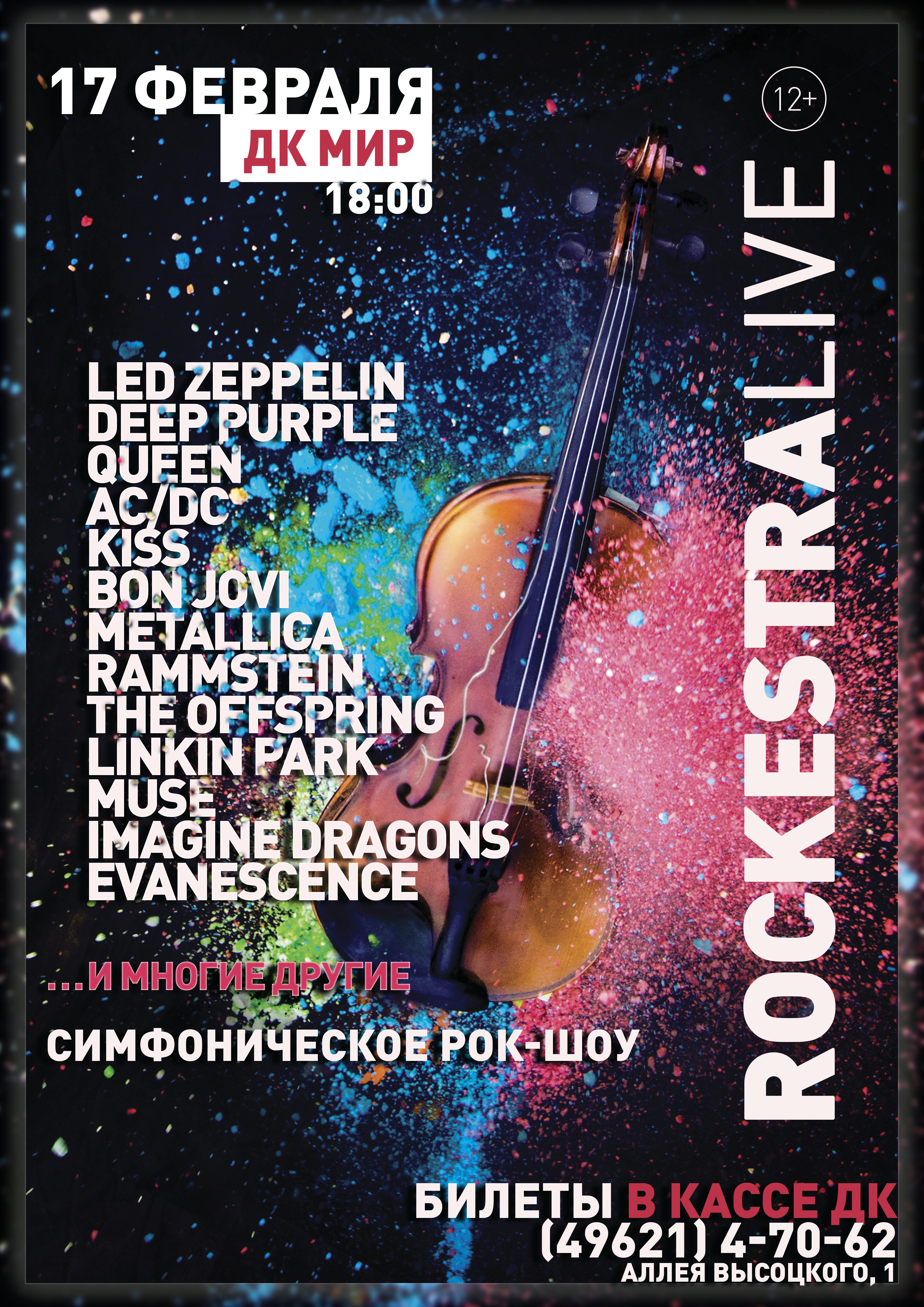 The JINR Cultural Centre “Mir” invites to the symphony rock-show RockestraLive that will be held on Saturday, 17 February 2018, at 6.00 PM.