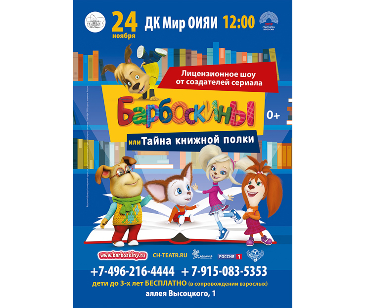 24 ноября 2019 года, Дом культуры «Мир» ОИЯИ приглашает детей и их родителей на детский спектакль «Барбоскины или Тайна книжной комнаты».