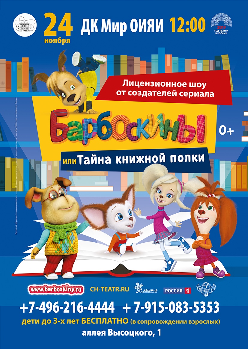 24 ноября 2019 года, Дом культуры «Мир» ОИЯИ приглашает детей и их родителей на детский спектакль «Барбоскины или Тайна книжной комнаты».