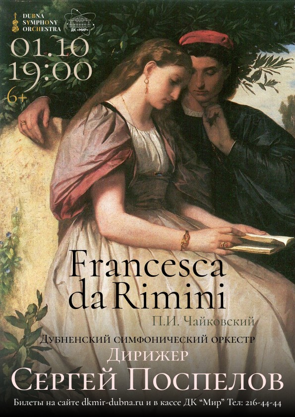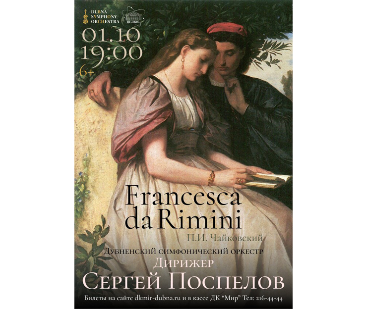 The programme includes Francesca da Rimini: Symphonic Fantasy after Dante and Symphony No. 5 by P. Tchaikovsky.