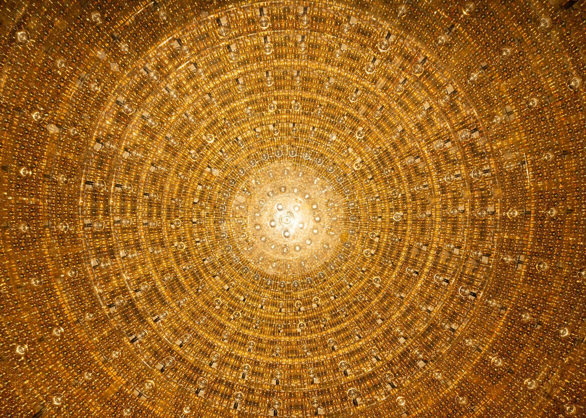 Центральный детектор JUNO до заполнения: видна часть фотоэлектронных умножителей, направленных наружу, а также катушки компенсации магнитного поля Земли. Фото: Yuexiang Liu