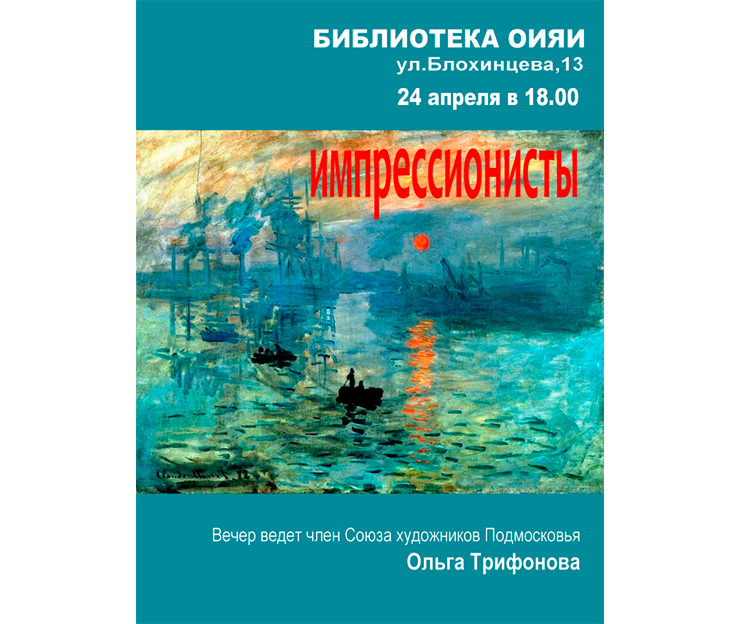 The JINR Universal Public Library invites parents with children from 10 years old to the evening “Impressionists”.