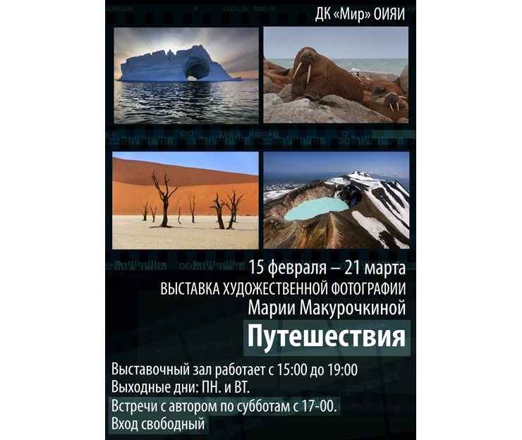 From 15 February to 21 March, the JINR Cultural Centre “Mir” invites to the exhibition hall for the exhibition of art photography “Travels” by Maria Makurochkina.
