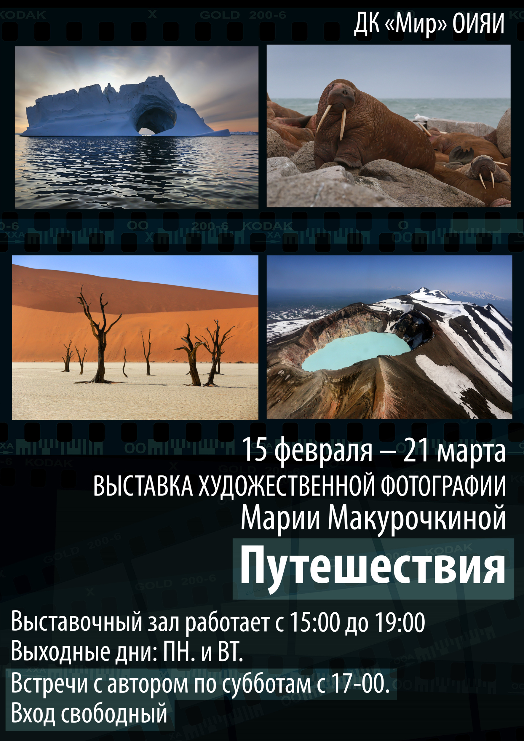 From 15 February to 21 March, the JINR Cultural Centre “Mir” invites to the exhibition hall for the exhibition of art photography “Travels” by Maria Makurochkina.