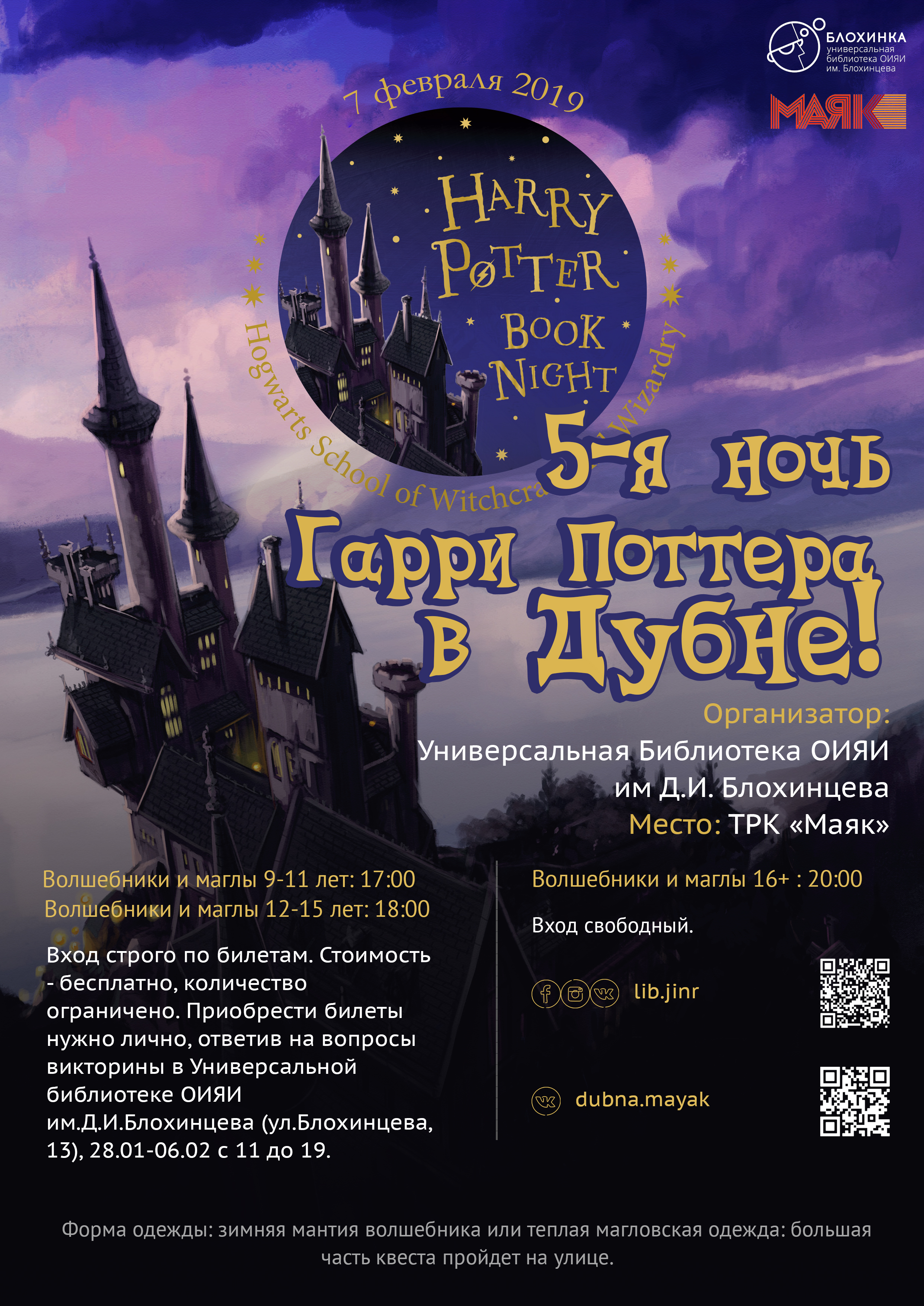 The fifth Harry Potter night will be held worldwide on 7 February 2019. In Dubna, this event will be organized for the 4th time by volunteers and staff members of the JINR Universal Public Library. This year, the “Mayak” mall is the lead sponsor of the event.
