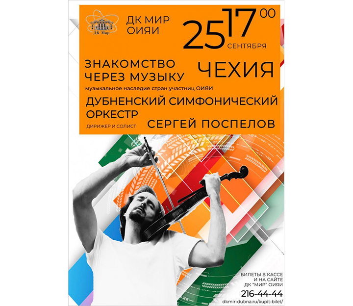 The concert features “Serenade for Strings” by Czech composer Antonín Dvořák performed by the Dubna Symphony Orchestra.