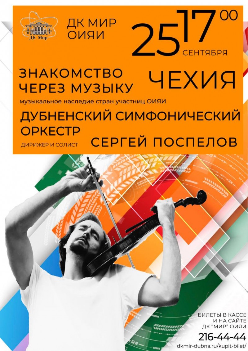The concert features “Serenade for Strings” by Czech composer Antonín Dvořák performed by the Dubna Symphony Orchestra.