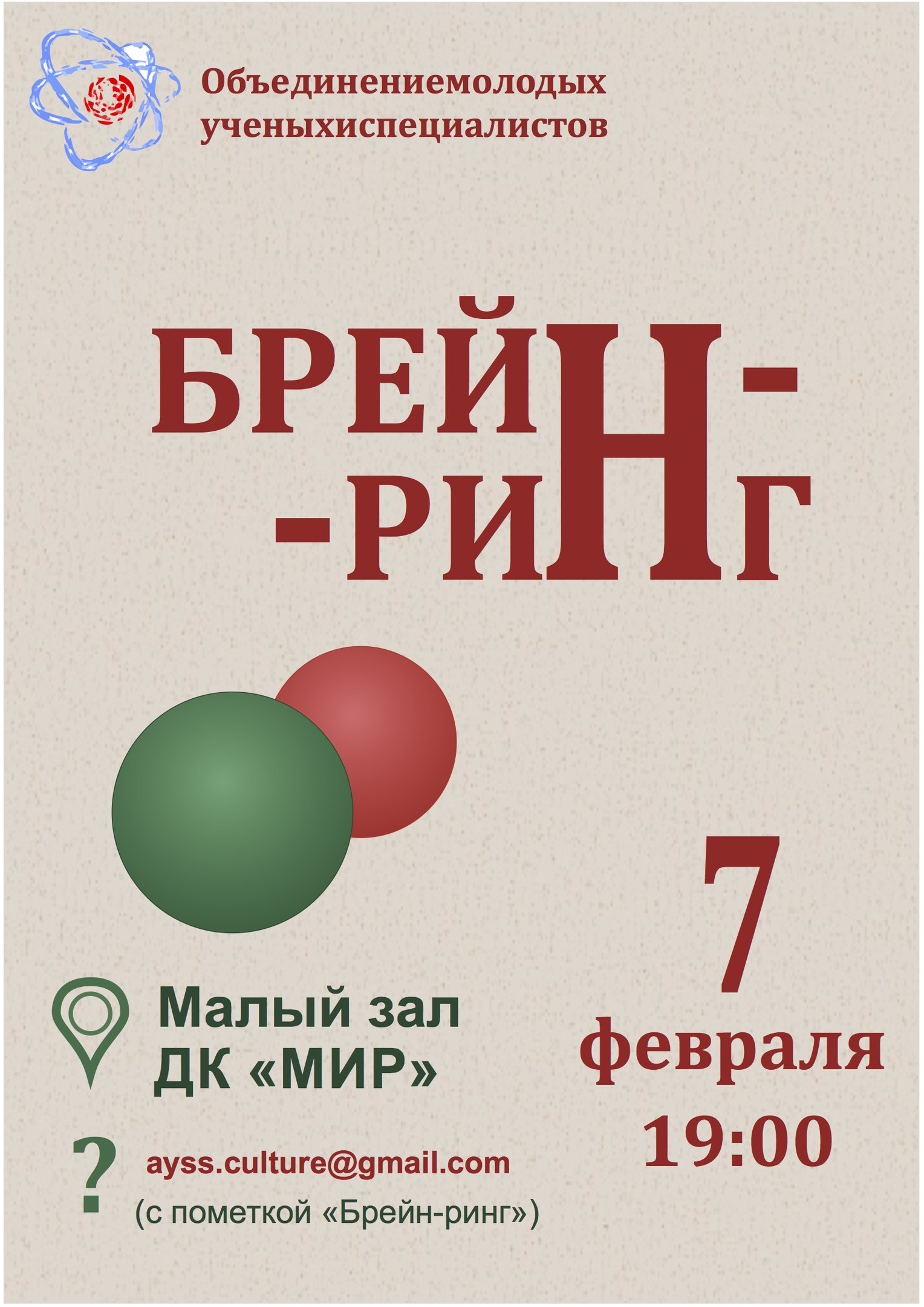Место: Дом культуры «Мир», 2-й этаж (Малый зал)