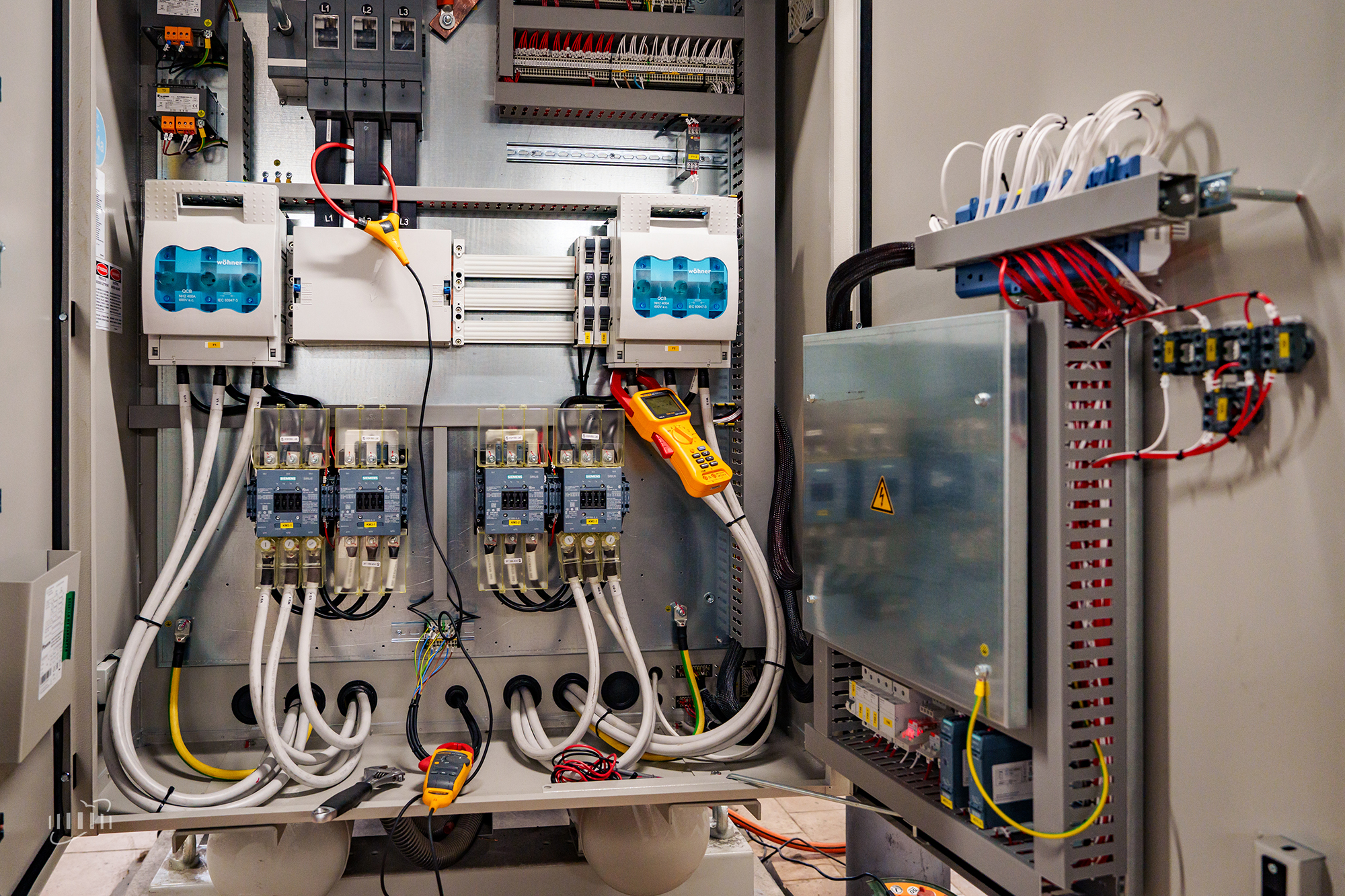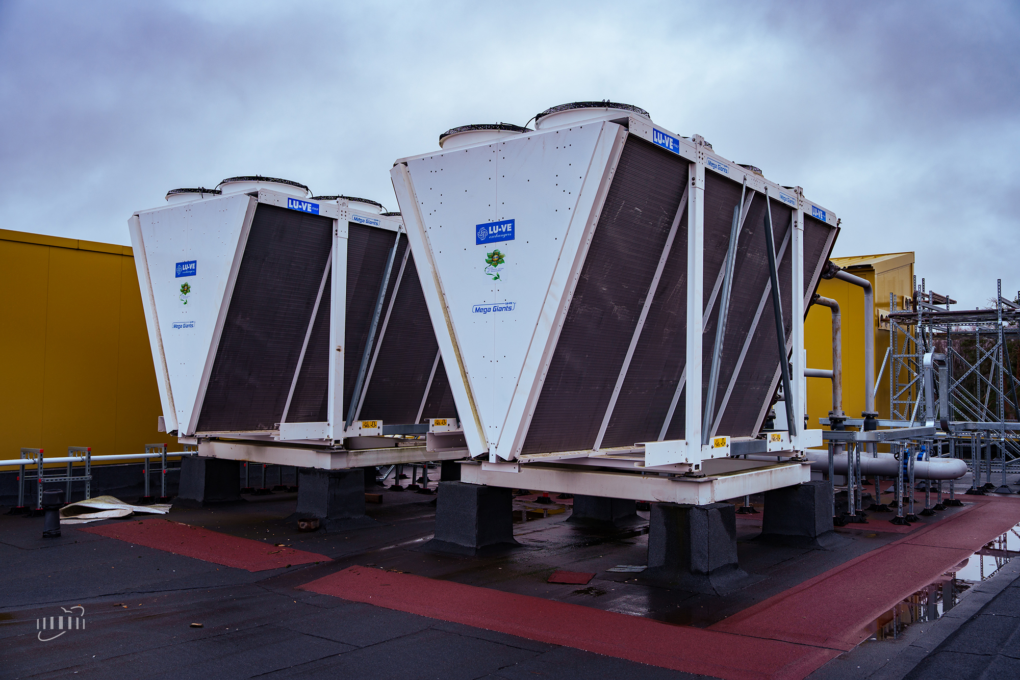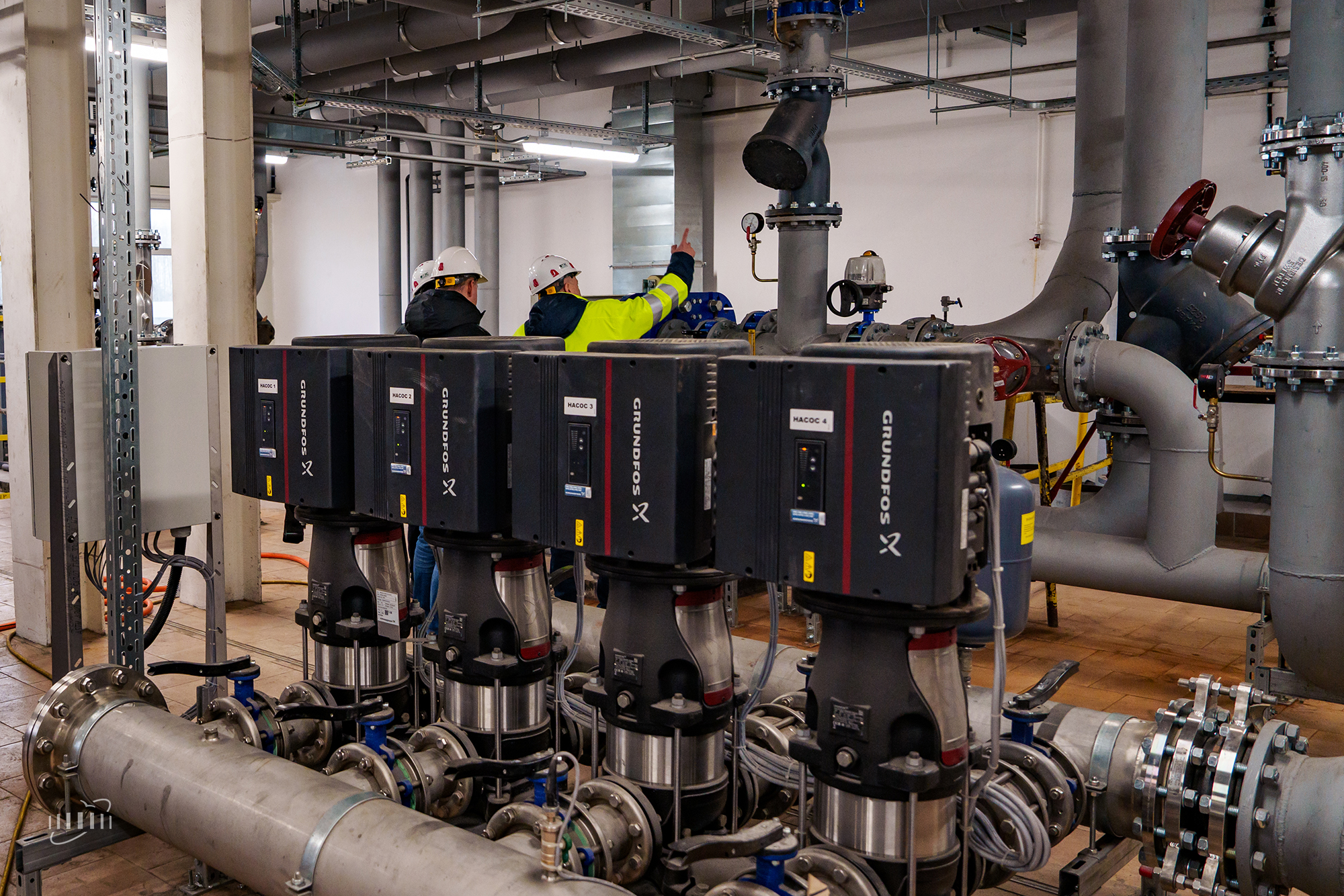 СС3 and WC3 ensure regular cooling and maintain the operating temperature of dipole magnets, stations of high-frequency accelerating systems, vacuum pumps, and other equipment in the eastern half-ring and beam transport channels. The CC3 Cooling Centre includes two chillers with a capacity of 850 kW each, outdoor condensing units, dry coolers located on the roof of the experimental pavilion, and other auxiliary equipment.
