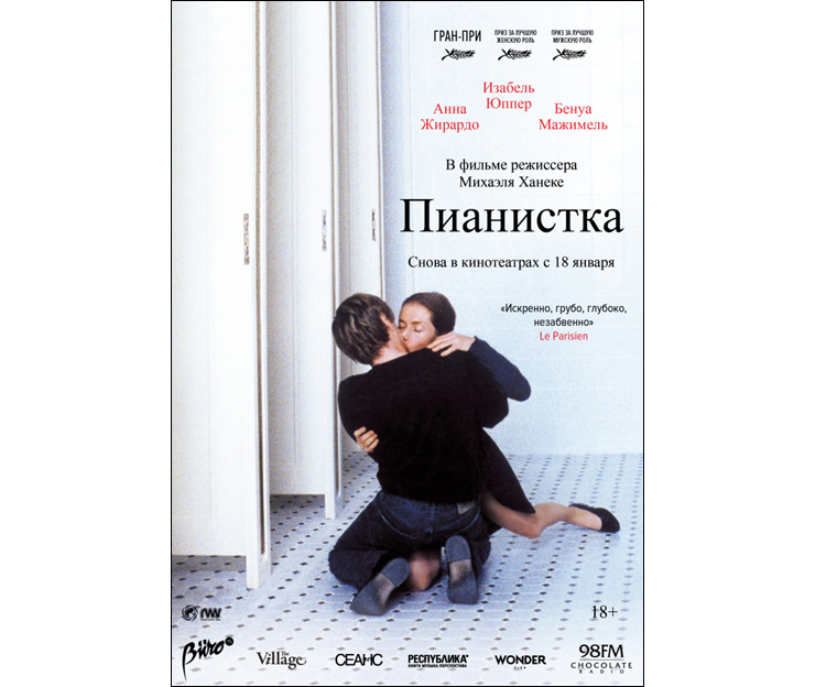 Награды: 2001 — победитель в номинации «Лучшая женская роль» (Изабель Юппер) Европейской киноакадемии;