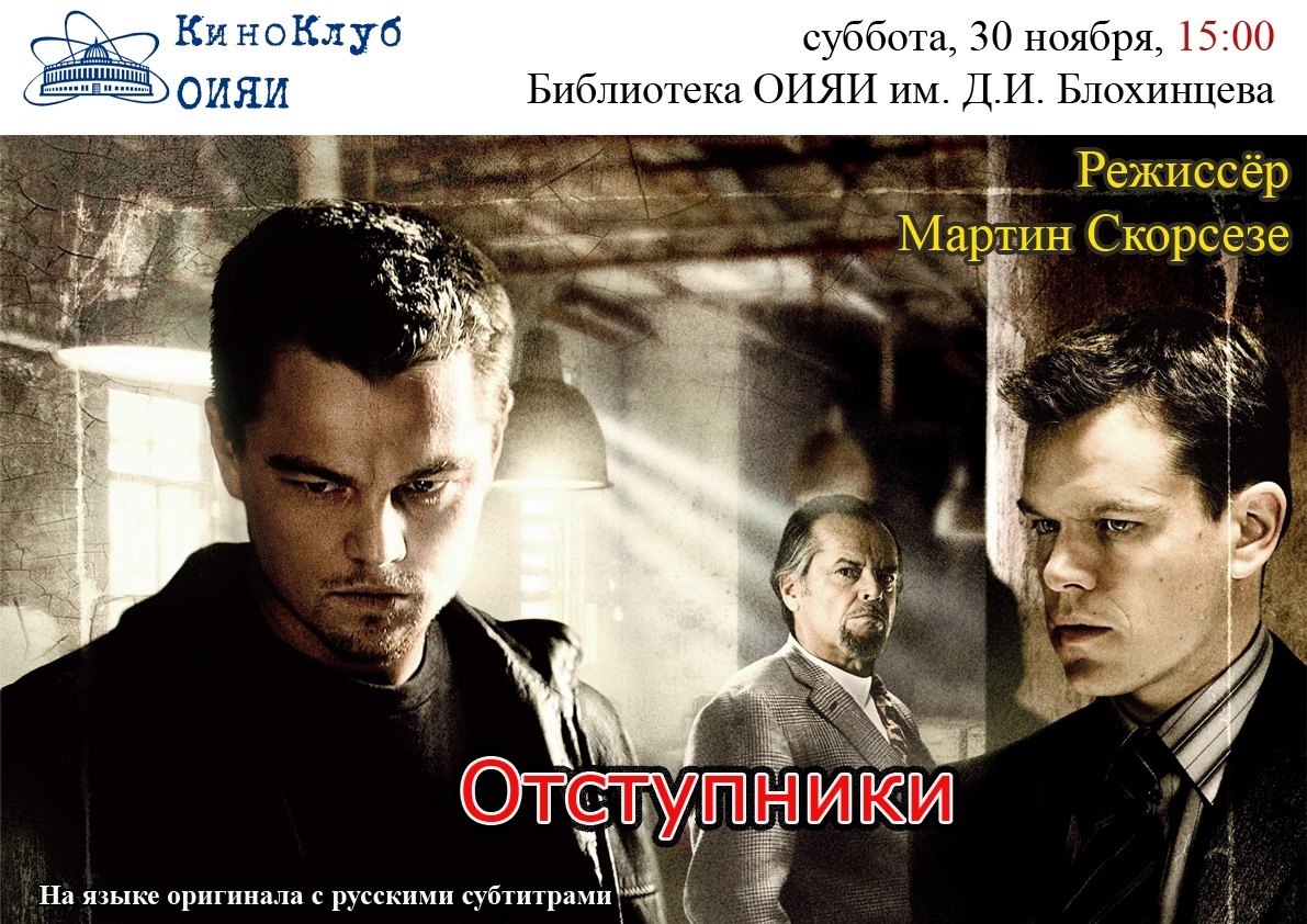Приглашаем на очередной Киноклуб Блохинки. В этот раз смотрим и обсуждаем фильм «Отступники» (2006) режиссера Мартина Скорсезе.