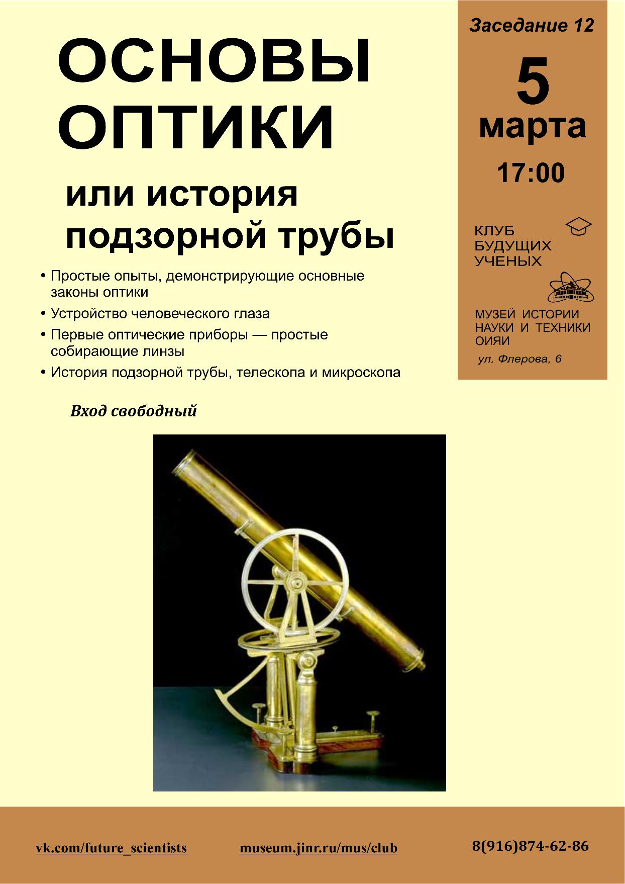 Тема встречи: Основы оптики или история подзорной трубы. Приглашаем школьников 3-6 классов!