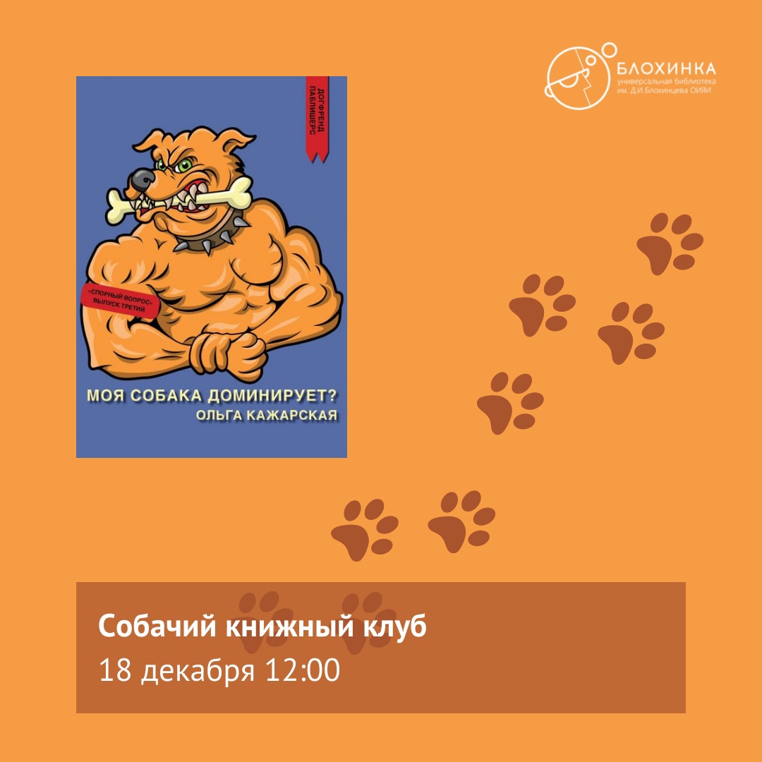 Участники обсудят книгу О. Кажарской «Моя собака доминирует?». Ее необходимо прочитать к встрече.