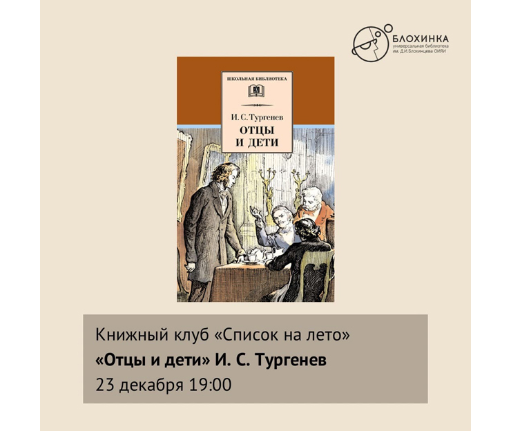 Универсальная библиотека ОИЯИ приглашает на встречу книжного клуба «Список на лето»: перечитываем взрослыми глазами произведения школьной программы. Обсуждаем роман И. С. Тургенева «Отцы и дети».