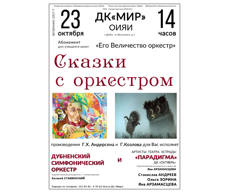 Дубненский симфонический оркестр и Театр эстрады «Парадигма» представляют «Сказки с оркестром».