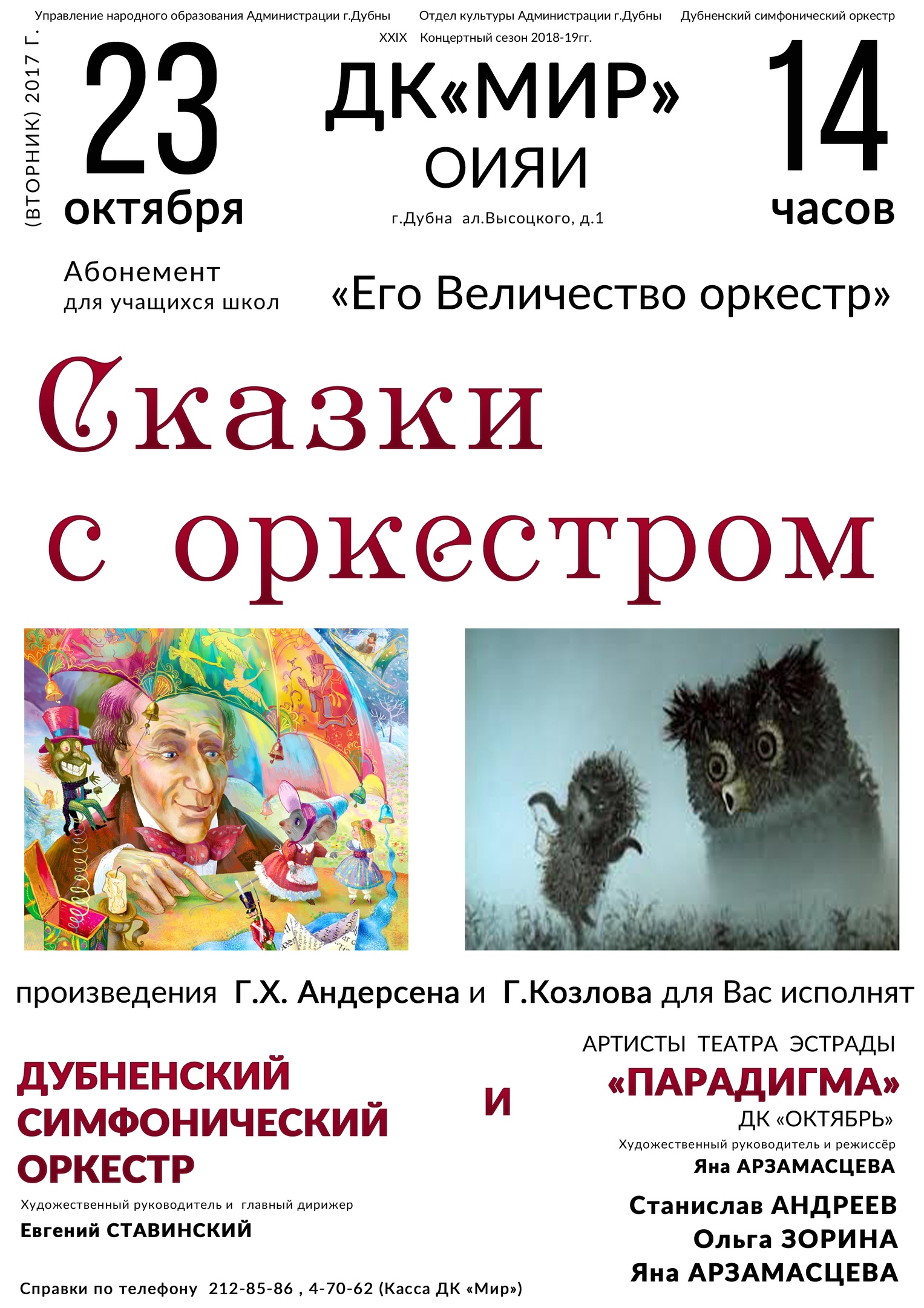 Дубненский симфонический оркестр и Театр эстрады «Парадигма» представляют «Сказки с оркестром».