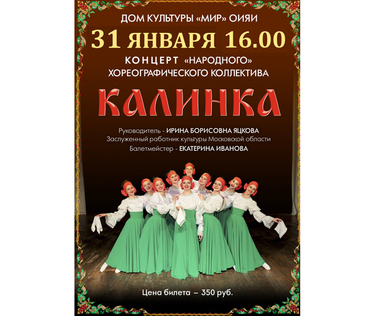7 марта 2021 г. в 16:00 Дом культуры «Мир» ОИЯИ приглашает на концерт народного хореографиечского коллектива «Калинка».