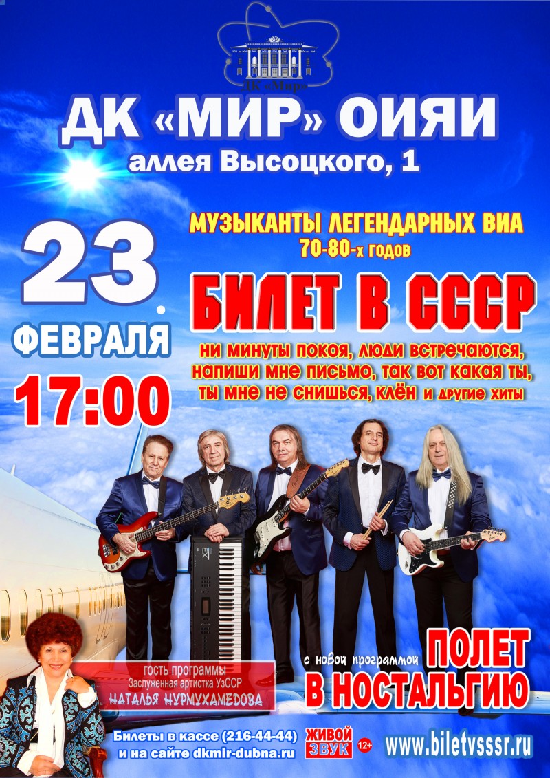 23 февраля в 17:00 в ДК «Мир» ОИЯИ состоится концерт «Билет в СССР».