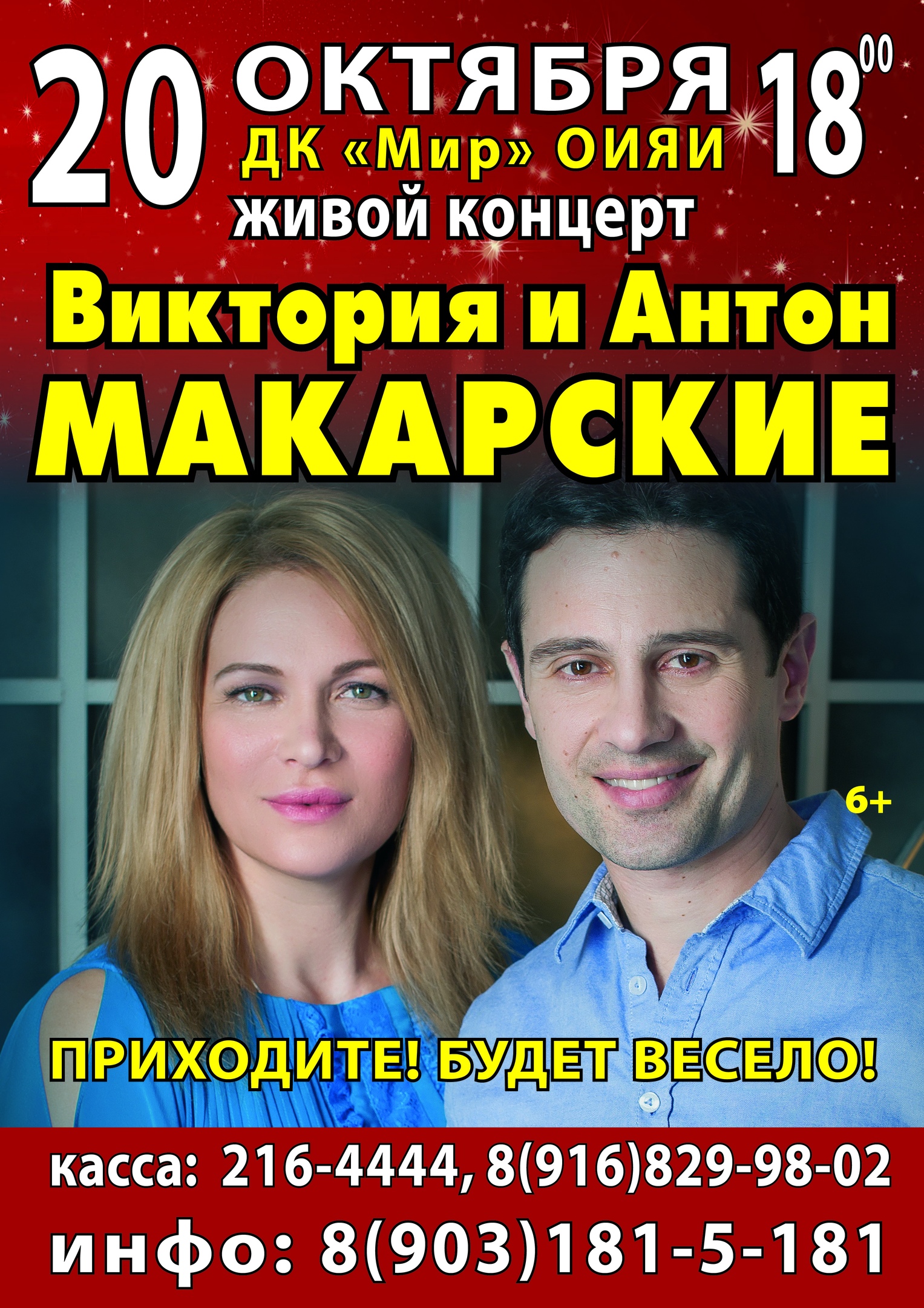 20 октября 2019 года в 18:00 часов, в Доме культуры «Мир» ОИЯИ состоится концерт Виктории и Антона Макарских.