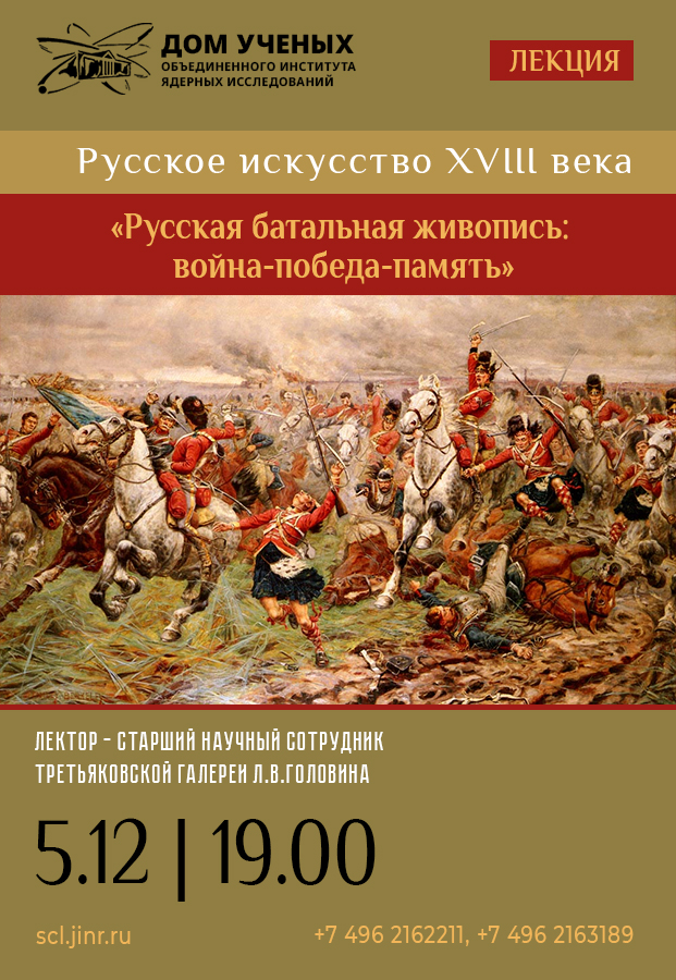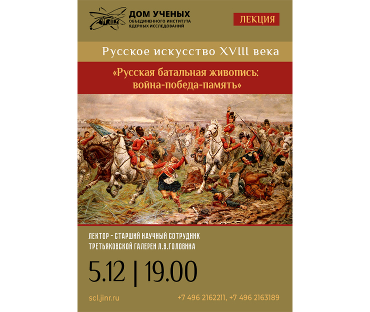 On Friday, 5 December 2025, at 7:00 PM, the JINR Scientists’ Club invites everyone interested to the lecture “Russian art of the 18th century. Russian Military art: War-Victory-Memory”.