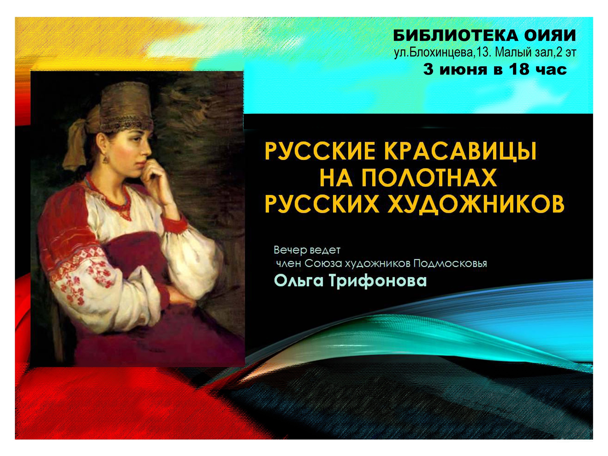 3 июня 2022 года в 18:00 Универсальная библиотека ОИЯИ приглашает на лекцию для детей «Русские красавицы на полотнах русских художников».