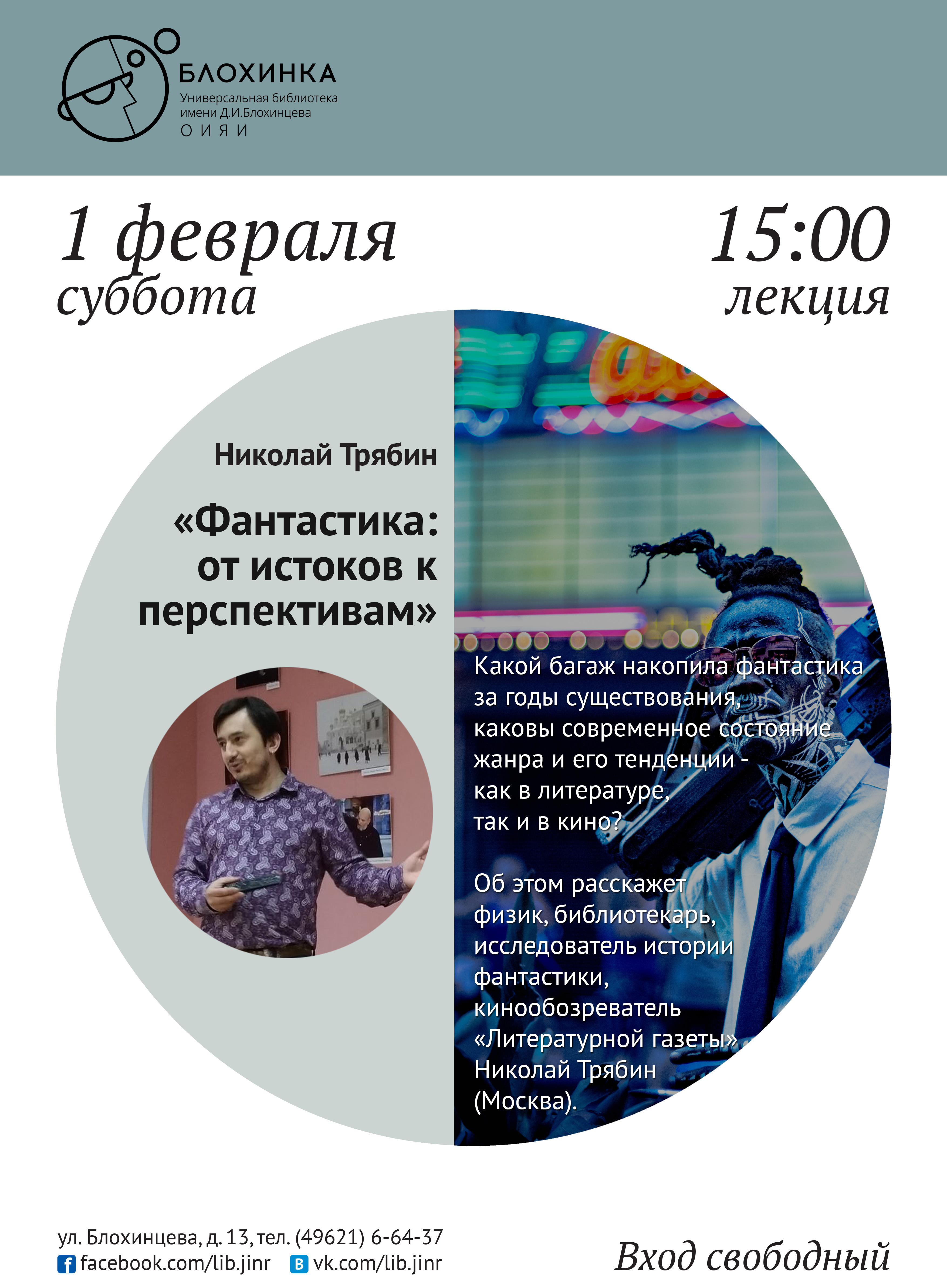 Блохинка приглашает на лекцию «Фантастика: От истоков к перспективам». Наш спикер — библиотекарь, исследователь истории фантастики, кинообозреватель «Литературной газеты» и лектор Николай Трябин (Москва).