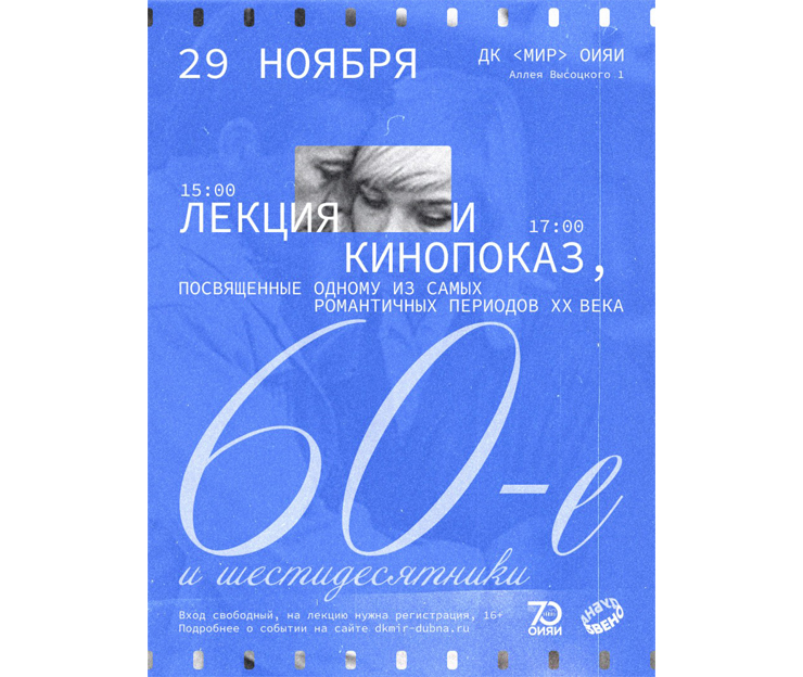 29 ноября 2025 г. в 15:00 Дом культуры «Мир» ОИЯИ приглашает на лекцию «Шестидесятые и шестидесятники» и последующий кинопоказ фильма «Любить…».