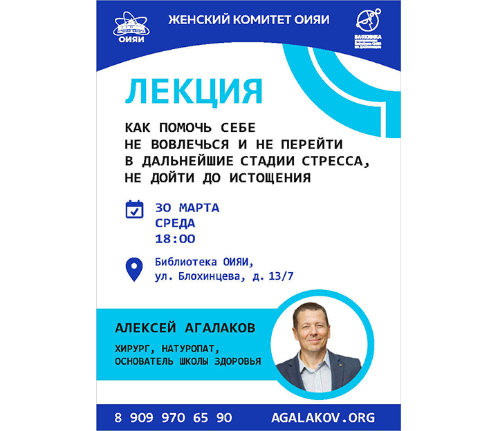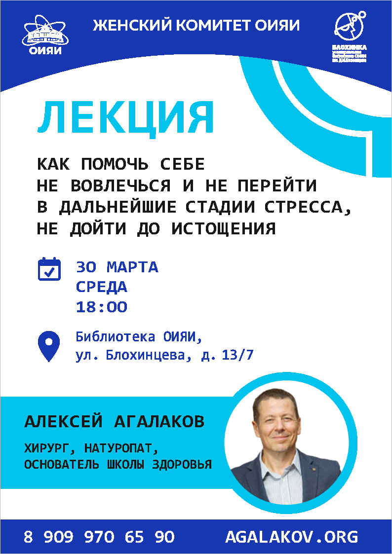 им. Д. И. Блохинцева будет прочитана лекция о том, как помочь себе не вовлекаться и не переходить в дальнейшие стадии стресса, как не дойти до истощения.
