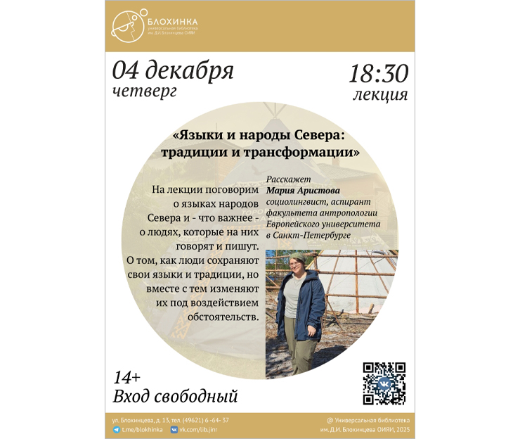 Универсальная библиотека ОИЯИ приглашает посетителей старше 14 на лекцию «Языки и народы Севера: традиции и трансформациие».