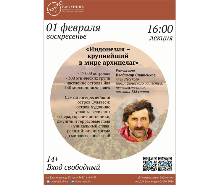 Универсальная библиотека ОИЯИ приглашает посетителей старше 14 на лекцию «Индонезия – крупнейший в мире архипелаг».