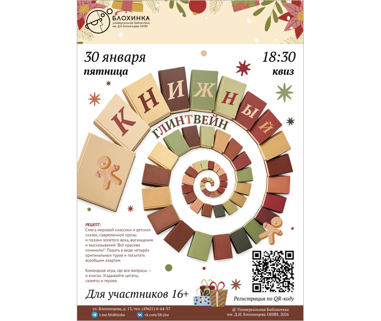 Универсальная библиотека ОИЯИ приглашает всех желающих на квиз «Книжный глинтвейн».