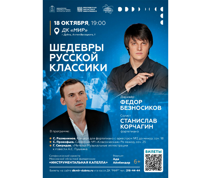 On 18 October 2025, at 7:00 PM, the JINR Mir Cultural Centre invites everyone interested to the Masterpieces of Russian Classics concert.