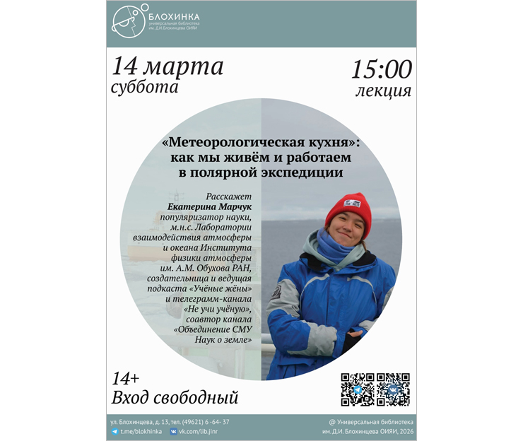 The JINR Universal Public Library invites visitors over 14 to the seminar entitled “Meteorology in a nutshell: how we live and work in a polar expedition”.