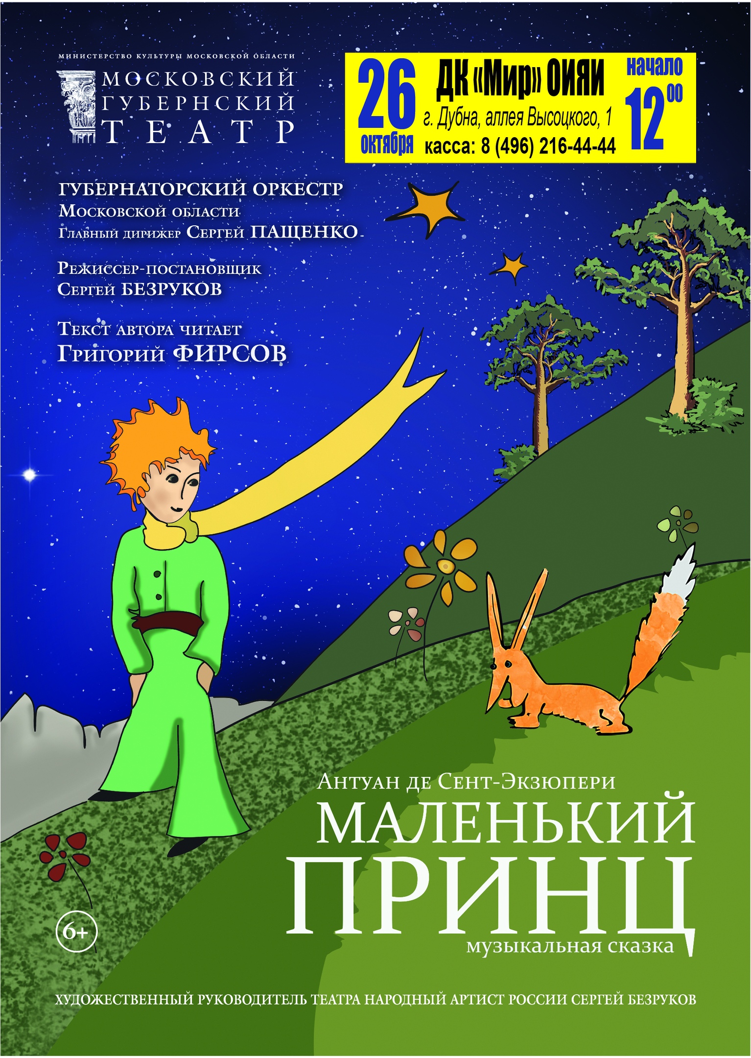 26 октября 2019 года в 12:00 часов, Московский Губернский театр приглашает в Дом культуры «Мир» ОИЯИ на музыкальную сказку «Маленький принц».