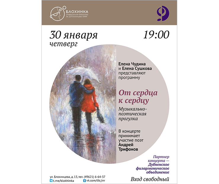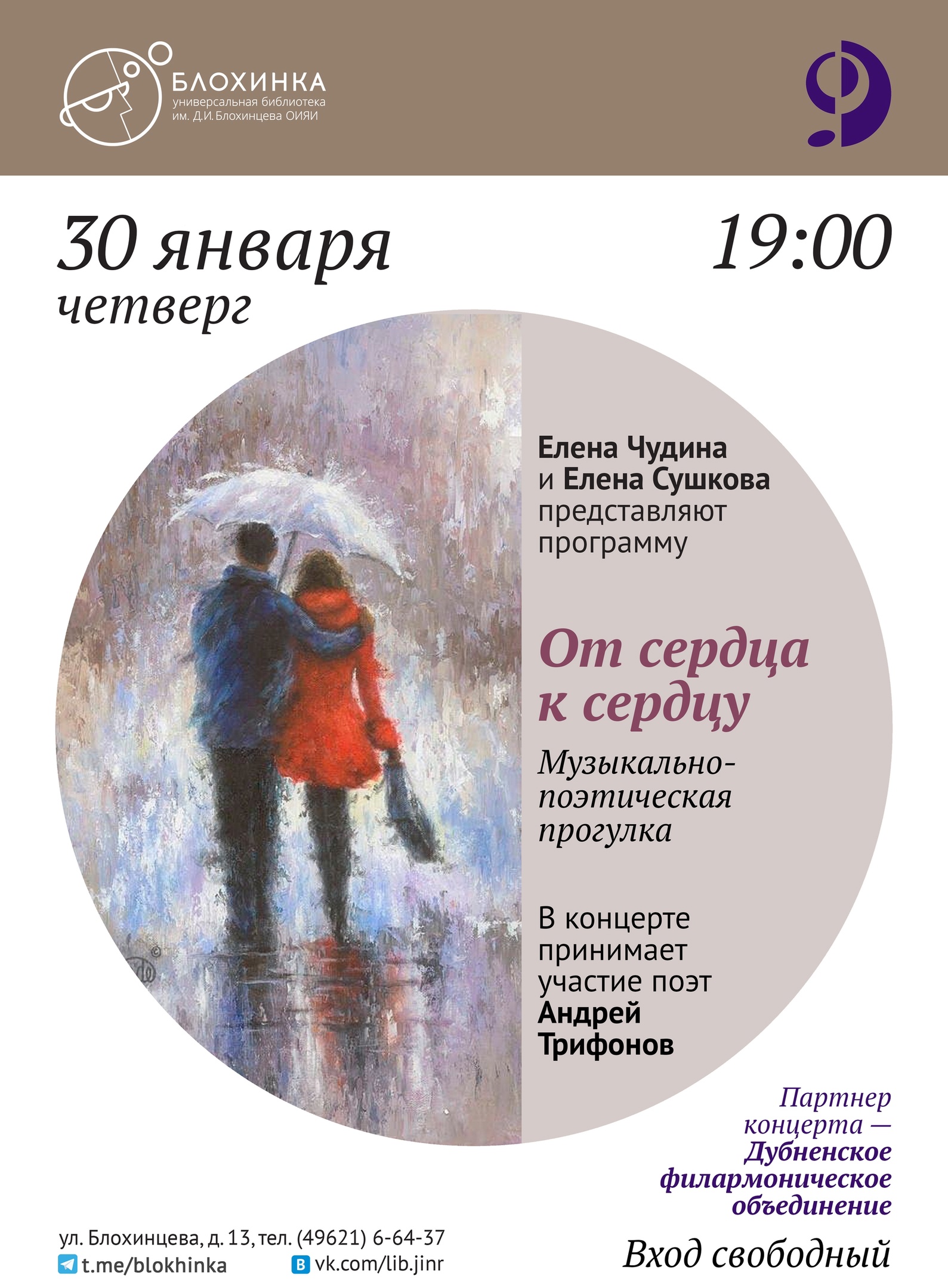 30 января 2025 г. в 19:00 Универсальная библиотека ОИЯИ приглашает на музыкально-литературный вечер.