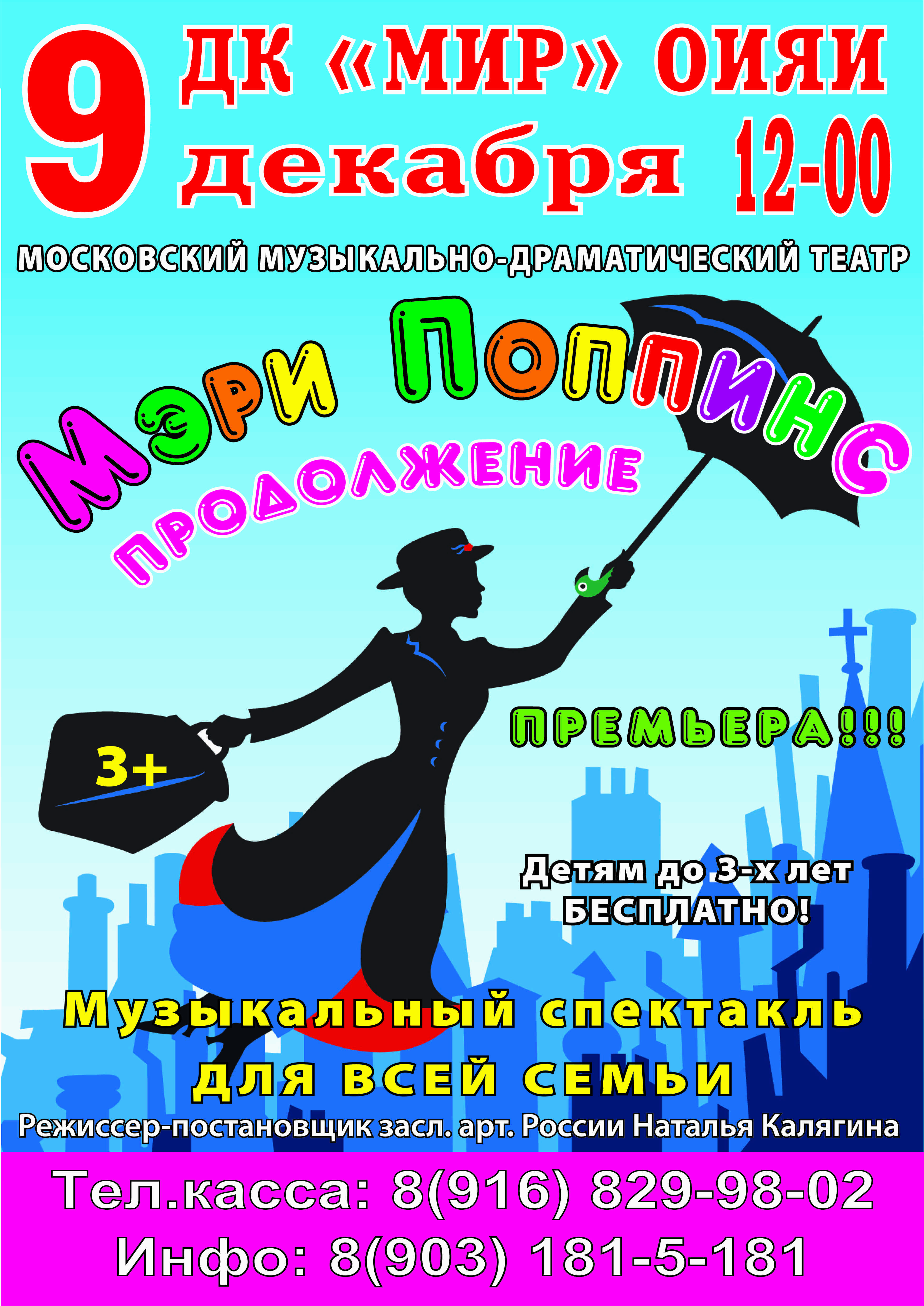 Дом культуры «Мир» ОИЯИ приглашает на Музыкальный спектакль для детей «Мэри Поппинс. Продолжение…» в постановке Московского музыкально-драматического театра. Спектакль состоится 9 декабря 2018 года в 12:00 часов.