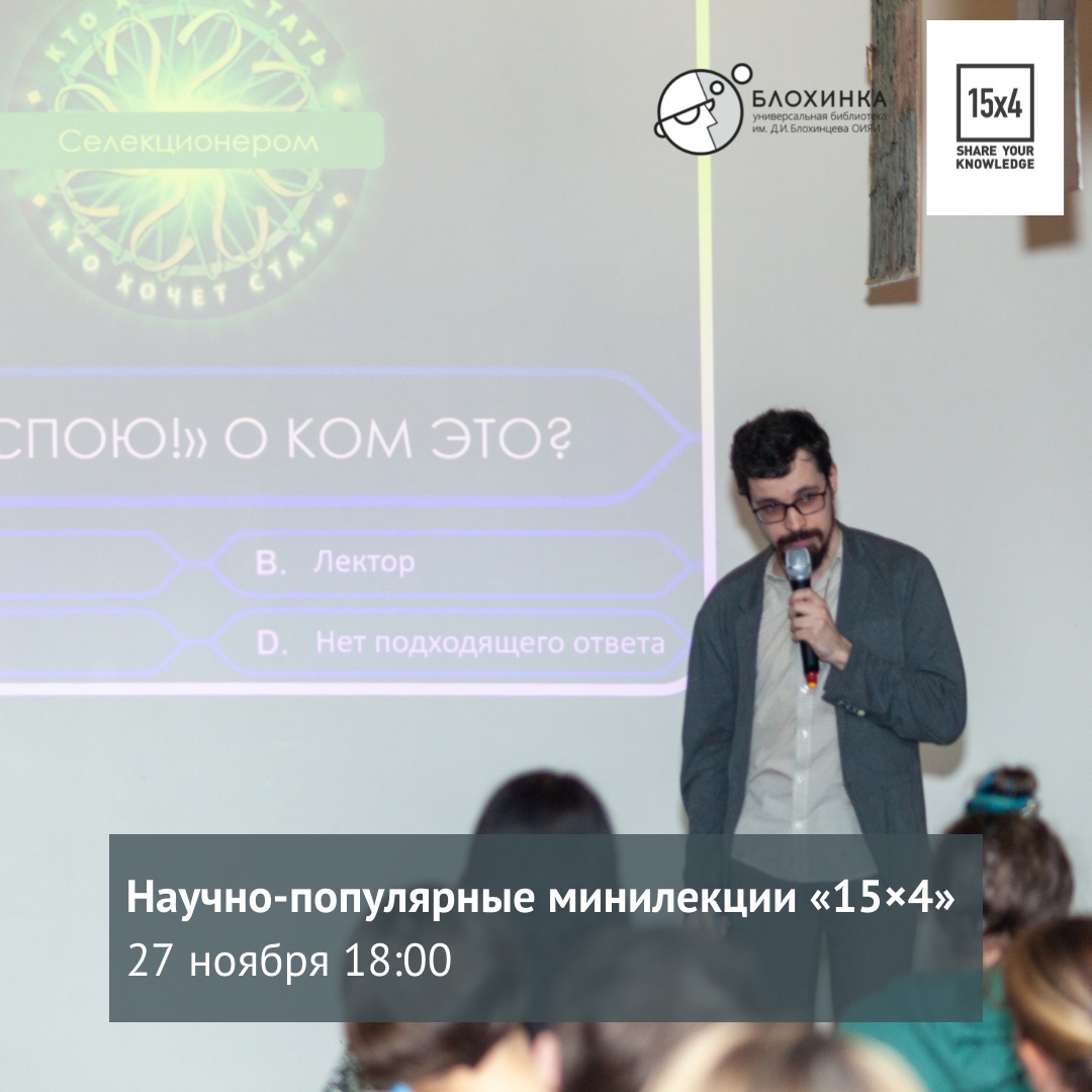 27 ноября 2021 г. в 18:00 Универсальная библиотека ОИЯИ приглашает на научно-популярные минилекции «15×4».